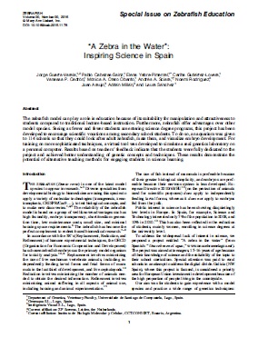 The zebrafish model can play a role in education because of its suitability for manipulation and attractiveness to students compared to traditional lecture-based instruction. Furthermore, zebrafish offer advantages over other model species. Seeing as fewer and fewer students are entering science degree programs, this project has been developed to encourage scientific vocations among secondary school students. To do so, an aquarium was given to 114 schools so that they could look after adult zebrafish, mate them, and visualize embryo development. For training on more sophisticated techniques, a virtual tool was developed to simulate a real genetics laboratory on a personal computer. Results based on teachers’ feedback indicate that the students were fully dedicated to the project and achieved better understanding of genetic concepts and techniques. These results demonstrate the potential of alternative teaching methods for engaging students in science learning.
